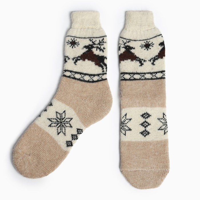 — Носки шерстяные женские Олени бежевый р-ры 23, 25