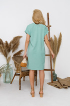 Комфортное платье на каждый день из смесового льна. Платье свободного силуэта со спущенным плечом. По переду застежка на пуговицы из натурального кокоса.