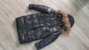 Зимнее пальто для девочки, размер 152 см (12 лет). Теплое, удобное и легкое. Черный цвет делает его универсальным. Длина рукава 60 см, длина изделия 88 см, ширина плеч 40 см. Пальто имеет капюшон и воротник для дополнительной защиты от ветра и холода. Состояние отличное, кроме небольшого швачка в районе спины (зашито аккуратно).