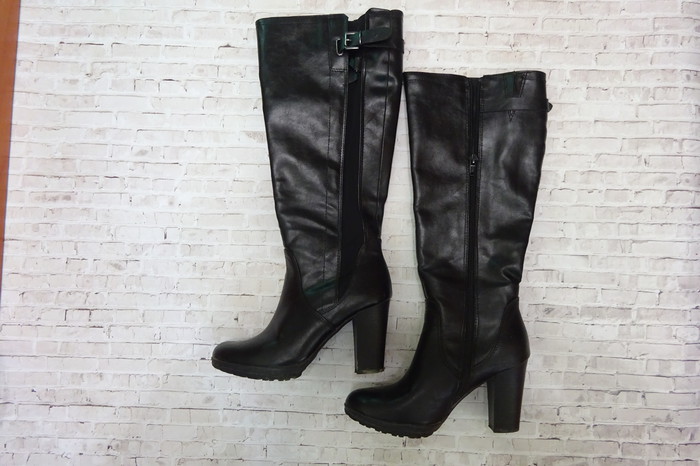 Б/у, одевала раз 5. Сапоги из Германии, качественный кожзам. Мне очень широко в голнище (высота от каблука 35 см, ширина голенища 40 см).