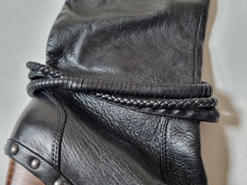 Новые демисезонные сапоги известного итальянского бренда Dolce Vita, Women's Henrietta Platform Boot. Брендовые стильные женские сапоги Dolce Vita, кожа класса люкс – одна из разновидностей старинного сафьяна; очень прочная, мягкая, ласкающая ноги, со сдержанным классическим природным рисунком и приятной рельефностью. С изогнутой пяткой на платформе, кольцо с кисточкой соединяет текстурированные ремешки с заклепкамина щиколотках со средней частью голени, сбалансированного на пятке и платформе с металлической отделкой серебристого цвета, заклепками на платформе, кожаная подкладка и стелька. Этот стиль без застежек отлично смотрится надетым поверх джинсов или мини. Цвет: Black. Состав: натуральная кожа 100%. Размер: 9 M US, 39 наш, высота каблука примерно 11,5 см, высота платформы примерно 32 мм. Без коробки.