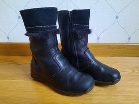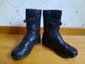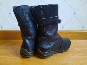 Б/У, зимние сапоги российского производителя Юничел, артикул СЗ0381. Зимние сапоги Unichel для девочек из натуральной кожи, внутри натуральный мех, теплые, уютные. Для мини-модниц эти повседневные сапожки отличаются оригинальным дизайном в виде полоски из меха и замшевым верхом, без каблука и теплой меховой подкладкой и стелькой. Цвет: черный. Состав: натуральная кожа 100%, подкладка натуральный мех 100%, подошва резина 100%. Размер: 29 наш, длина по стельке 18 см, длина стопы 18,5 см. Без коробки. Состояние: б/у, удовлетворительное, есть потертости на носке, заменена собачка на кольцо.