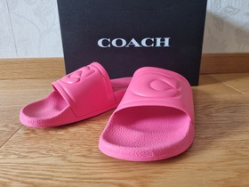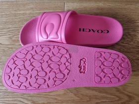Новые оригинальные сланцы известного американского бренда COACH Ulla Rubber Slide. Эти непринужденные спортивные шлепанцы изготовлены из мягкой водонепроницаемой резины с тиснением логотипа. Контурная стелька обеспечивают комфорт в течение всего дня. А резиновая подошва обеспечивает долговечность скольжения. Цвет: Confetti Pink Rubber. Состав: 100% резина. Размер: 9 US, наш 39,5, длина по стельке 27 см, длина стопы 25,5. В коробке.