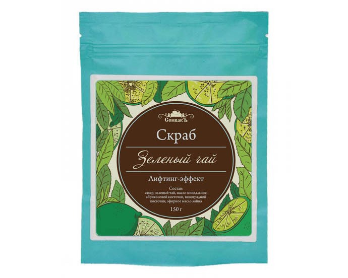 Состав сахар, зеленый чай, масло миндальное, абрикосовой косточки, виноградной косточки, эфирное масло лайма